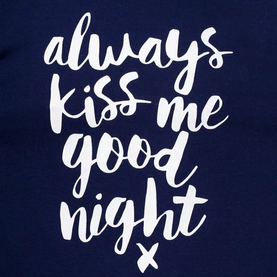 Dit nachthemd/bigshirt is een comfortabel nachthemd om in te slapen. Het shirt is bedrukt met de tekst ‘Always Kiss Me Goodnight’ en is gemaakt van 100% zacht katoen.