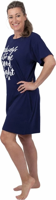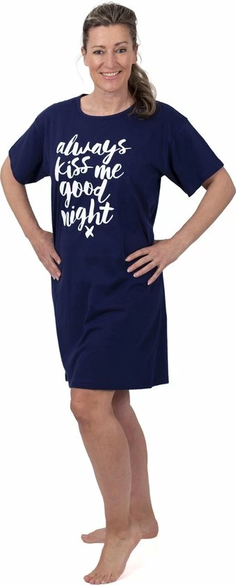 Dit nachthemd/bigshirt is een comfortabel nachthemd om in te slapen. Het shirt is bedrukt met de tekst ‘Always Kiss Me Goodnight’ en is gemaakt van 100% zacht katoen.