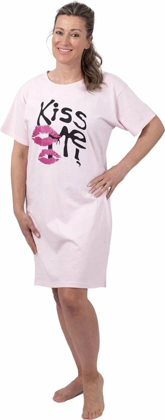 Dit nachthemd/bigshirt is een comfortabel nachthemd om in te slapen. Het shirt is bedrukt met de tekst ‘Kiss Me ‘ en is gemaakt van 100% zacht katoen.