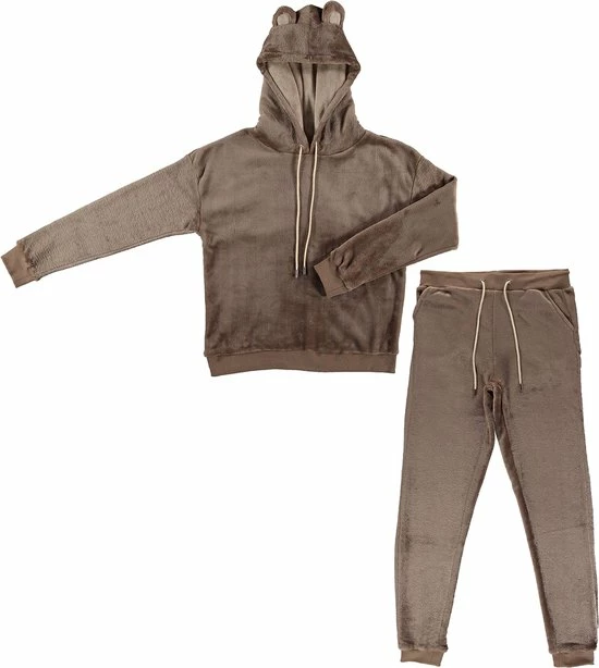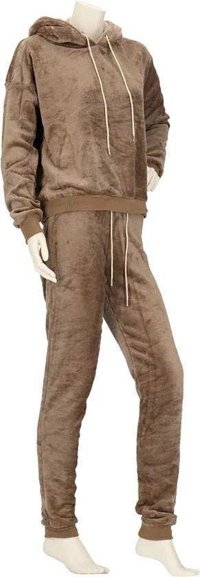 Heerlijke dames loungeset bestaande uit hoodie en bijpassende joggingbroek. De set is voorzien van comfortabele boorden en een trekkoord in zowel de capuchon van de hoodie als in de tailleband van de joggingbroek. Deze set is gemaakt van superzacht fleece materiaal.