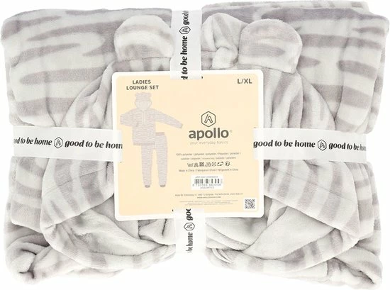 Apollo Huispak Dames | Zebra Print | Grijs | Maat L/XL | Huispak Dames Volwassenen Fleece | Joggingpak Dames