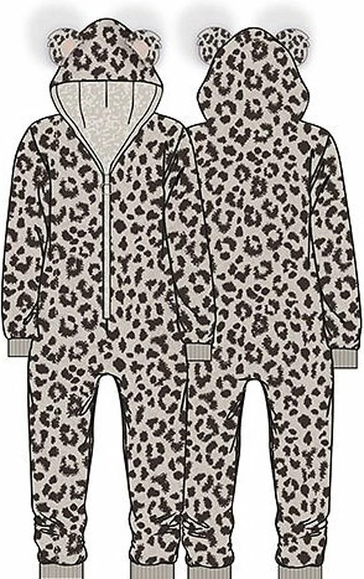 Apollo | Onesie dames | Leopard onesie | Grijs | Maat L/XL | Onesie volwassenen | Onesie pyama | Onesie volwasssenen vrouwen pyama | Apollo