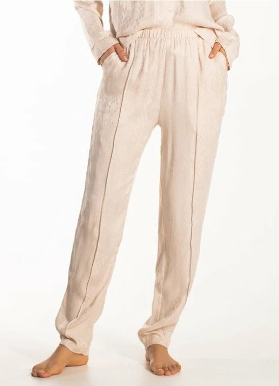 Cyell SOFT PEARL, zachte en soepele kwaliteit met een mooi shiny touch, ton sur ton snake print in de stof, elastische taille band, verticale naad over de pijpen aan de voorkant. Combineer de broek met de bijpassende pyjama top.