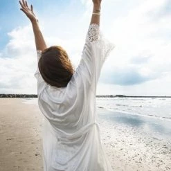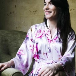 Merkloos Uniek Cadeau Vrouw,Kimono Dames Satijn, Bordeaux Rood Met Kant, Lang Model One Size