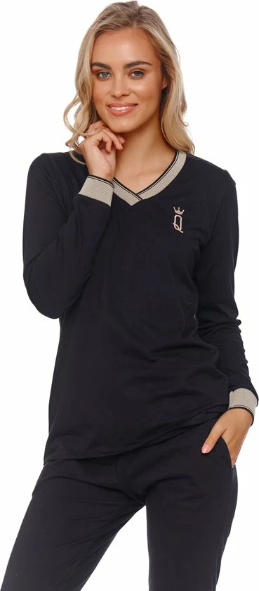 - Top: lange mouwen, V-hals, manchetten, versierd met een geborduurde letter “Q”.