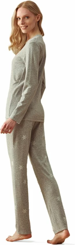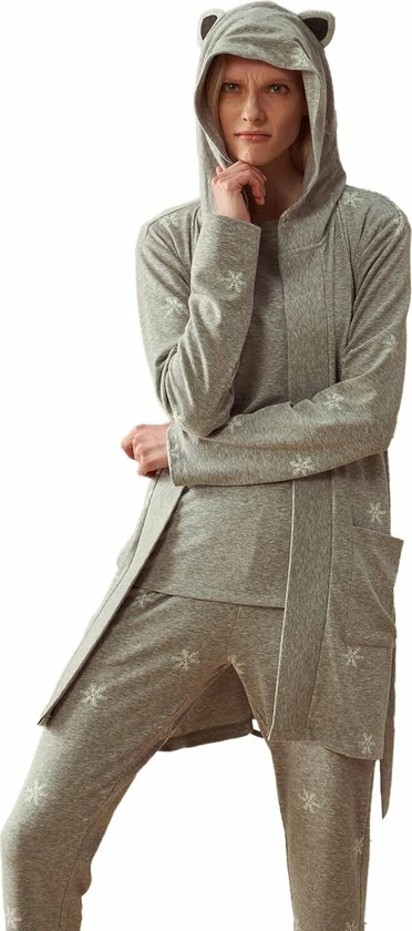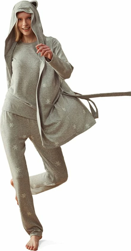 Feyza – 3 Delige Dames Pyjama Set, Lange Mouwen, Grijs – M