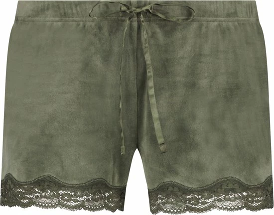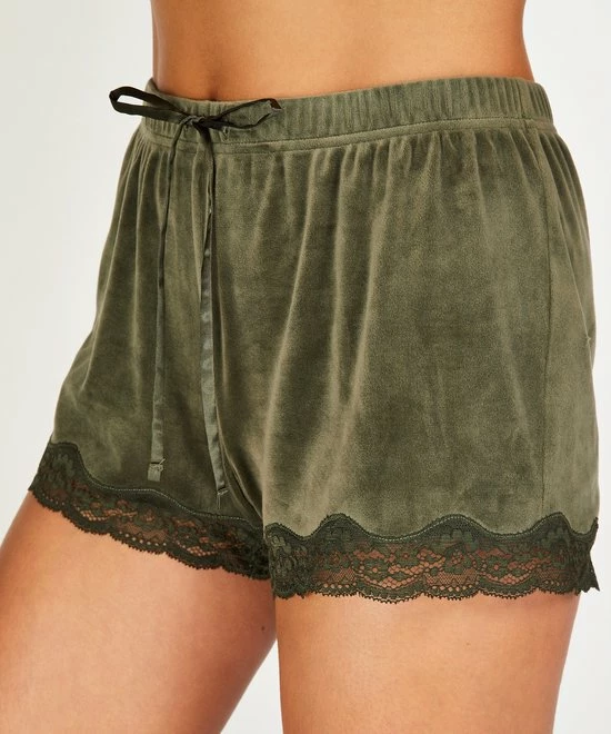 Voel je super sexy en vrouwelijk met deze zachte short aan! De short is gemaakt van een velours stof en is afgewerkt met kant. Combineer met matchende items.