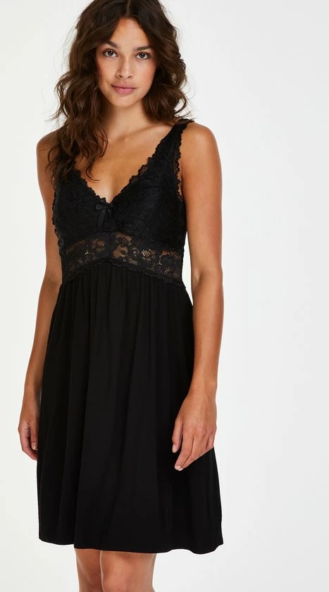 Hunkemöller Nachtmode Dames Slipdress Nora Lace – Zwart – Maat 2XL