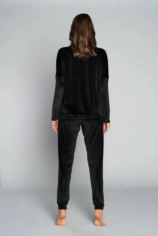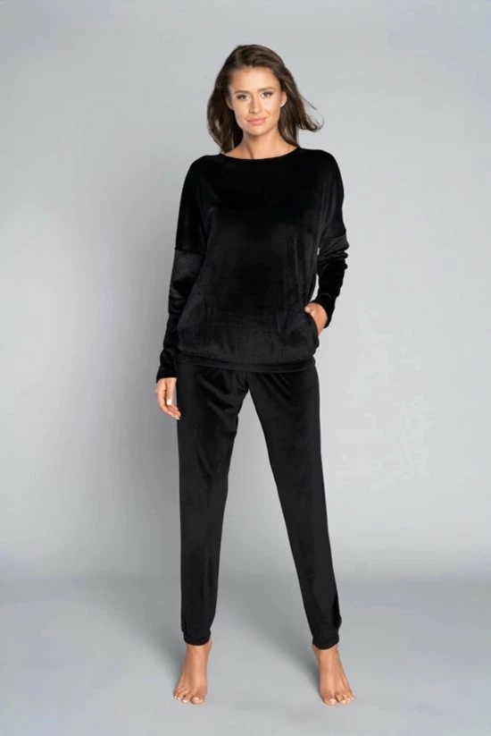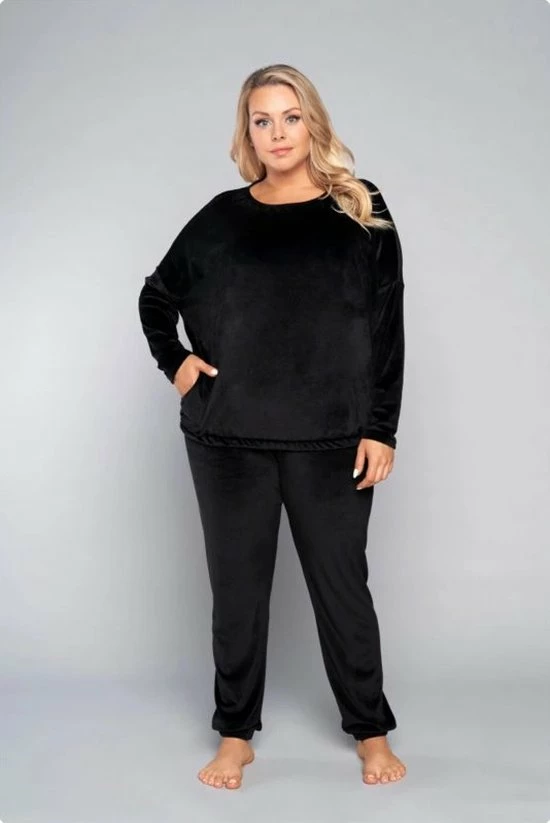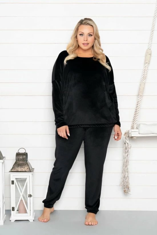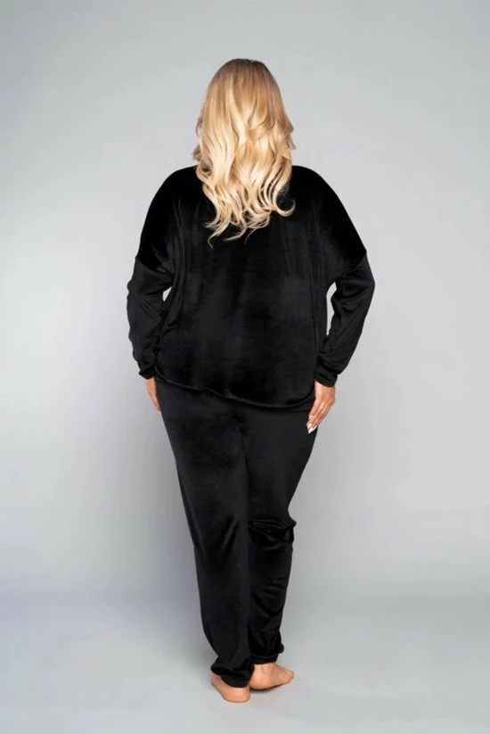 Warm, pluizig, perfect voor lange winteravonden thuis. De Juga damesset is een uitstekende propositie voor al diegenen die vervallen zijn en liefhebbers van comfort. Alleen al de aanraking zorgt ervoor dat elke vrouw erin wil wegzinken. Gemaakt van extreem zachte en delicate Bi-fleece stof, in een klassieke zwarttint.