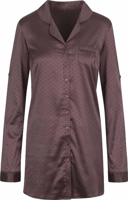 Be Wild & Free! Deze stoere en toch vrouwelijke mix & match serie kan niet ontbreken in je collectie. Deze pyjama jurk heeft een warme Rum Raisin kleur met een all-over dotprint.