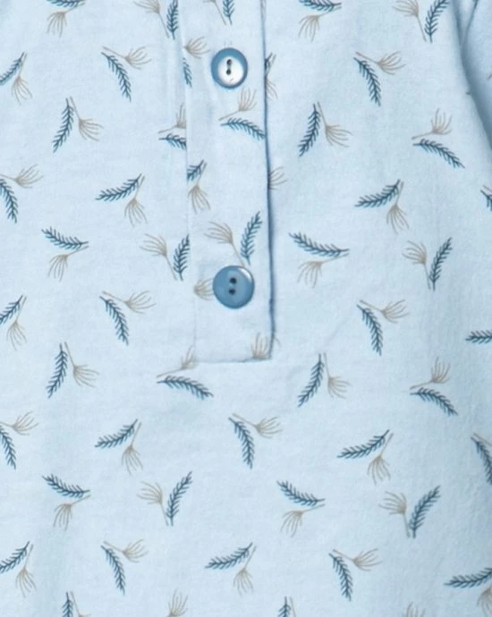 Mooi flanellen dames nachthemd met lange mouw. Netjes afgewerkt met een kraagje en knoopjes bij de hals. Door het geruwde katoen heerlijk warm om te dragen. Het nachthemd heeft een neutrale maar toch leuke all-over print.