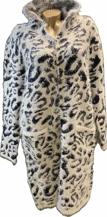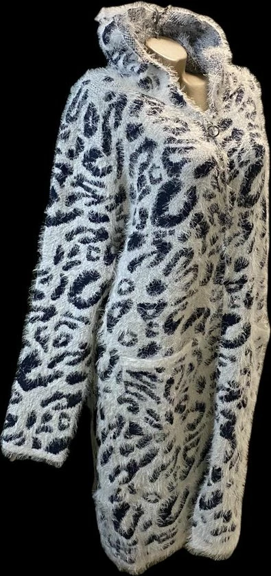 Merkloos Dames Lange Vest Met Panterprint Fluffy Rits En Capuchon M/L Donkerblauw