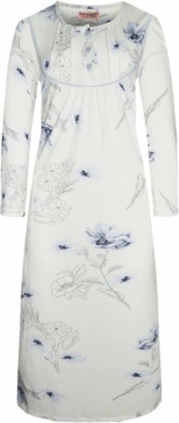 Dames lange mouw katoenen nachthemmd met ronde hals en knoopsluiting.