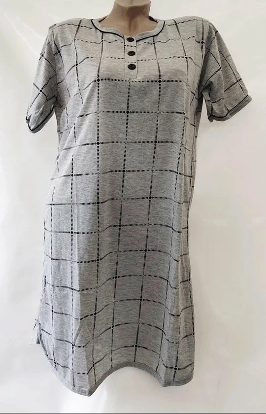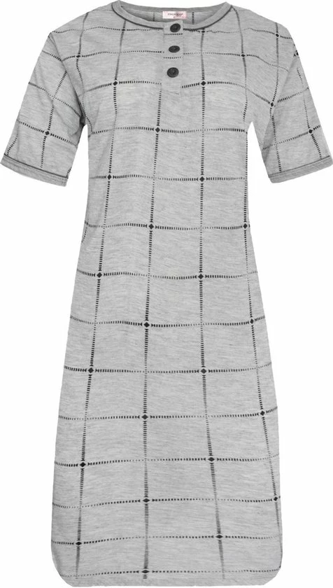 Merkloos Dames Nachthemd Korte Mouw Met Blokprint M 38-40 Grijs/zwart