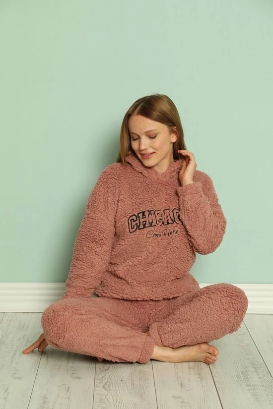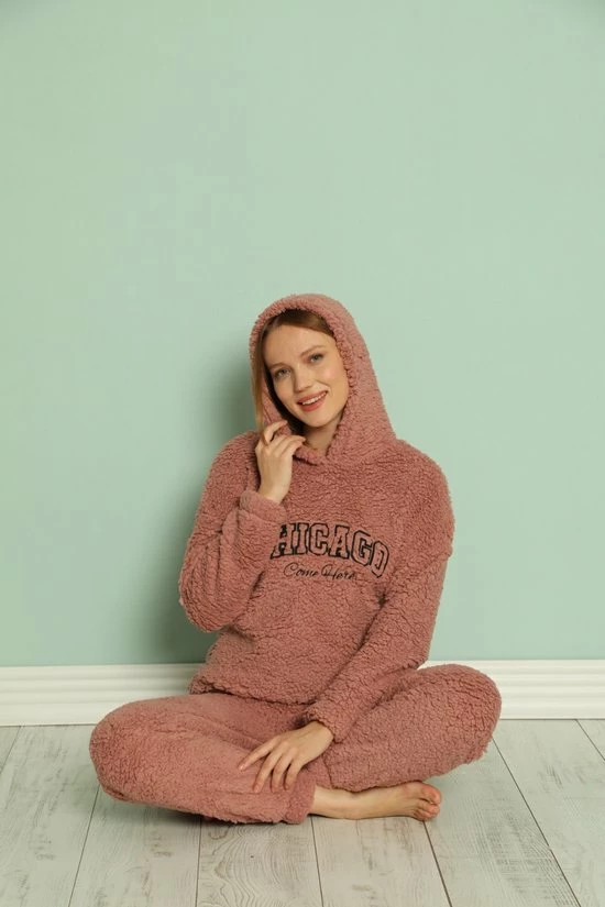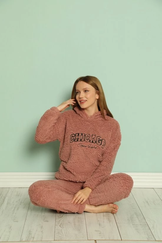 Deze teddy stof pyjama set met capuchon is ongelooflijk warm, superzacht om aan te raken en heeft een relaxed fit. Kortom, alle eigenschappen om het ultieme comfort te ervaren tijdens het koude winter dagen! Ook staat er een leuke tekst erop: “Chicago” Ook beschikbaar in meerdere kleuren!