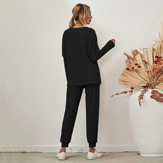 Merkloos Huispak Dames, Loungewear, Joggingpak Liberty. Kleur Zwart. Maat M.