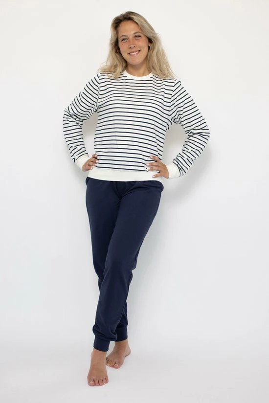 Merkloos Joggingpak Dames, Huispak Dames Bretonse Streep Ecru/marine – Maat L