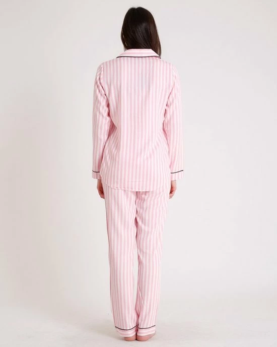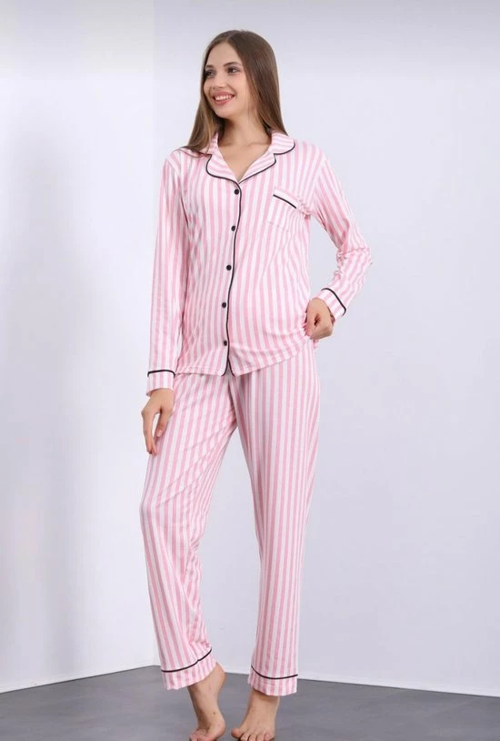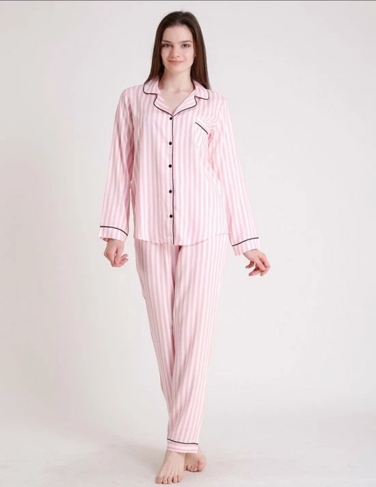 Prachtige katoen-satijnen pyjama set houdt je warm, huidvriendelijk, en ademt goed