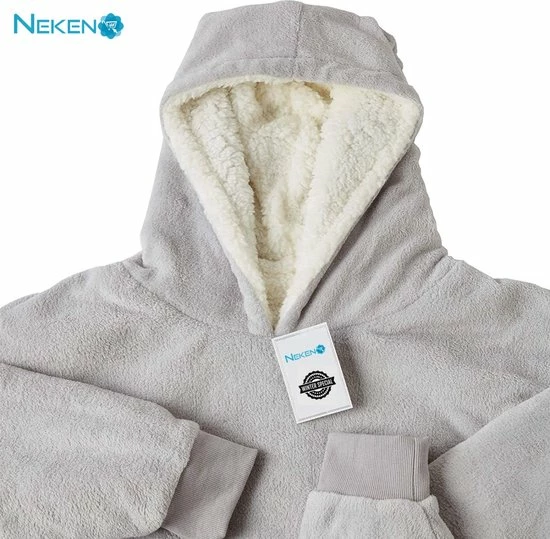 Merkloos Neken – Hoodie Deken Ultra Zachte Sherpa Fleece Warm Cosy Comfy Oversized Draagbare Reus Sweatshirt Gooi Voor Vrouwen Meisjes Volwassenen Mannen Jongens Kids Grote Pocket – Blush Grijs