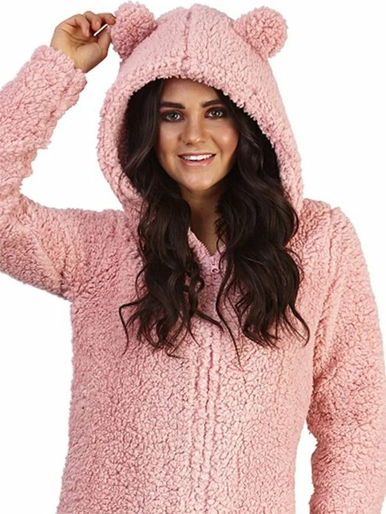 Voor de echte koukleumen onder ons. Heerlijke warme onesie voor de komende winter tijden! Deze grijze onesie is gemaakt van een zachte, teddy fleece stof. De onesie heeft een capuchon met daarop twee oortjes. Dit model sluit met een rits aan de voorkant. De pijpen en mouwen zijn afgewerkt met een elastische band waardoor de altijd goed vallen.