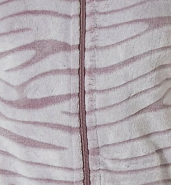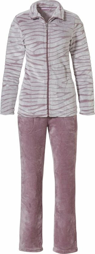 Heerlijk zacht en warm dames huispak van het goede merk Pasha. Dit fleece dames huispak bestaat uit een all-over bewerkt jasje en een uni broek. Het jasje heeft een chique all-over zebra schaduw print en is mooi afgewerkt met een kraag en steekzakken. De uni broek heeft tevens steekzakken en een aanrijgkoord.