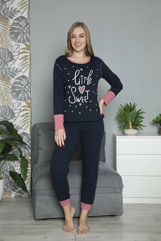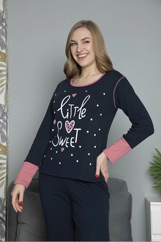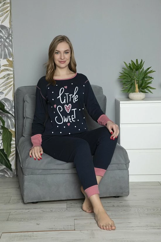 Deze pyjama bevat donkerblauw broek en blouse. De pyjama heeft een patroon met lichtroze details. De pyjama heeft een reguliere pasvorm en is beschikbaar in verschillende maten.Voor 17:00 uur besteld = morgen in huis!