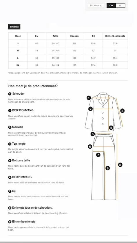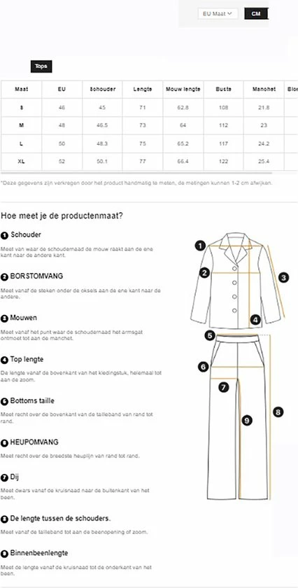 Wasmethode en grootte: Handwas en machinewas, maar het wordt aanbevolen om in koud water te wassen, niet te branden met water, dit beschermt uw pak. Raadpleeg de maattabel voor de productbeschrijving voordat je bestelt.