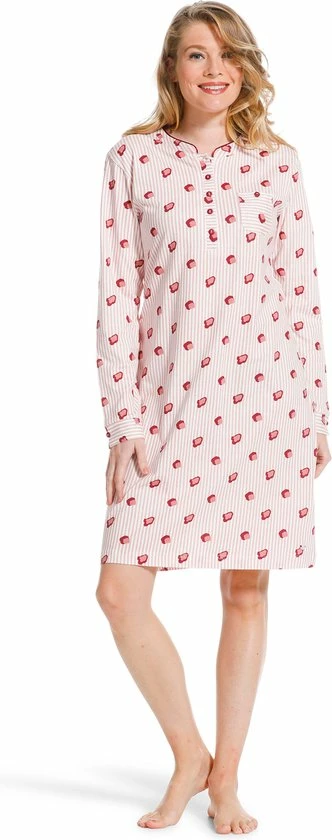 Het nachthemd is gemaakt van 100% katoen. Katoen is heerlijk warm in de winter en luchtig in de zomer, waardoor je dit nachthemd lange tijd door kunt dragen. Daarnaast is het gemakkelijk in onderhoud. Het nachthemd laat zich zonder moeite strijken en is bestand tegen hitte.
