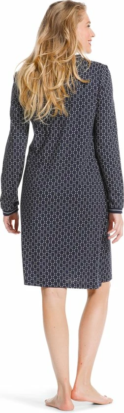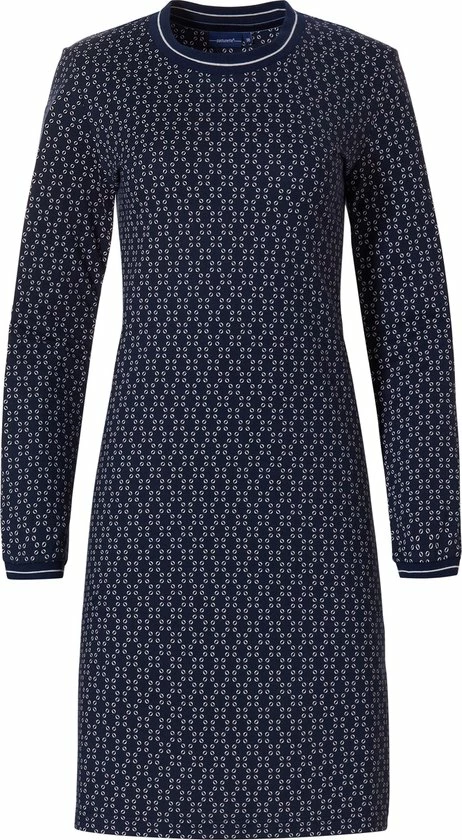Dit nachthemd van Pastunette komt uit de serie Blue Print en heeft een elegante donkerblauwe kleur. Het nachthemd heeft lange mouwen en een ronde hals. Deze winter must-have zit heerlijk comfortabel en houd je zeker warm.