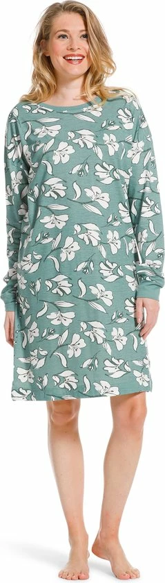 Het groene nachthemd met witte bloemen van Pastunette, zit de gedurende nacht super comfortabel. Daarnaast is het nachthemd gemaakt van een zachte, katoenen modal kwaliteit. Het nachthemd heeft een groene kleur met een vrolijke bloemenprint.