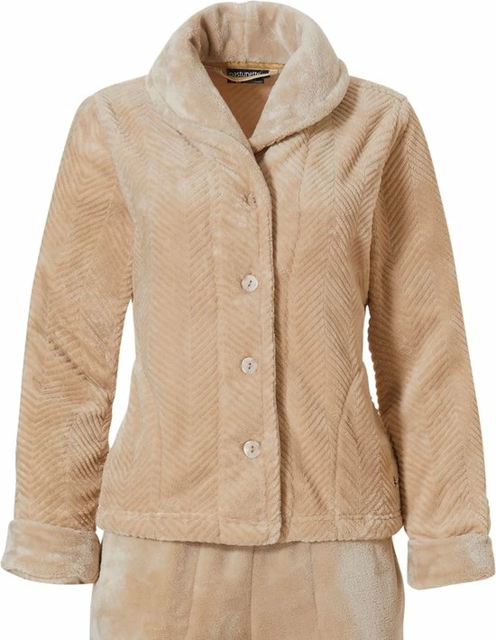 Dit huispak komt uit de serie Classic Chevron en is gemaakt van een heerlijk zachte en warme beige stof.