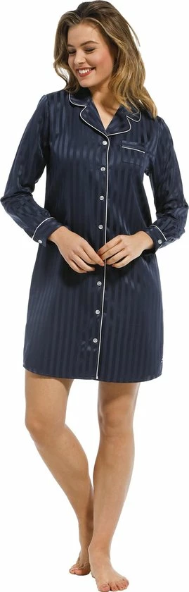 Pastunette De Luxe Pastunette Deluxe Monochrome Doorknoop Vrouwen Nachthemd – Dark Blue – Maat 38