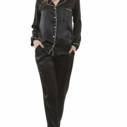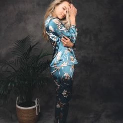Merkloos Pyama Broek Dames, Super Comfortabele Jacquardbroek In Denimblauw. Maat L. Loungewear.