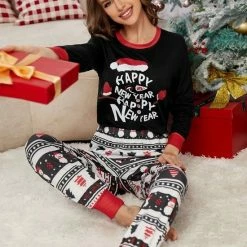 Merkloos Turquoise Kerst Thema Gebreide Pyjama Set, Christmas Pyjama Set ,kerstcadeau Voor Haar (L)