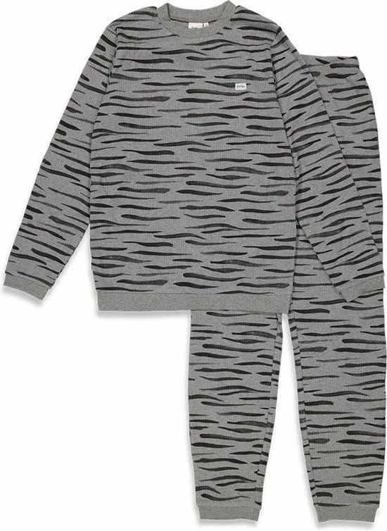Alweer een leuke wafel pyjama van Feetje in de fashion edition. Deze pyjama in de maten S, M, L, Xl is geschikt voor dames en heren. De hele familie in dezelfde pyjama als je ook de kids pyjama erbij besteld. De stof is zacht om te dragen op je lichaam. Op het linker voorpand een klein plaatje met het logo Feetje erop. De kleur van deze pyjama is middengrijs met donker grijze strepen erop.
