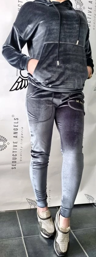 Dit 2 delige super comfortabele velours huispak / sportpak bestaat uit lange broek met elastieke tailleband. De bovenkant van deze set heeft lange mouwen en capuchon met aanrijgkoordjes. Het setje is gemaakt van de fijnste stoffen van hoge kwaliteit waardoor het extra zacht is en zeer plezierig om te dragen. Je voelt je er meteen in thuis. Een echte aanrader! Veel plezier ermee!!!