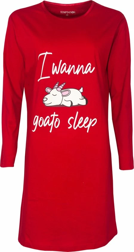 Temptation Dames Bigshirt gemaakt van 100% Gekamde Katoen. Dit Bigshirt is mooi Rood van kleur met een grappige Fantasie print. Dit Bigshirt met Lange mouwen heeft een Ronde hals afgewerkt met een Rood satijnen biesje, ook heeft dit Bigshirt een Grappige print op de borst. Dit Bigshirt heeft een lengte van 95 cm.