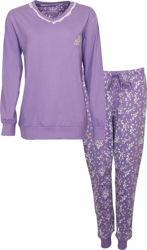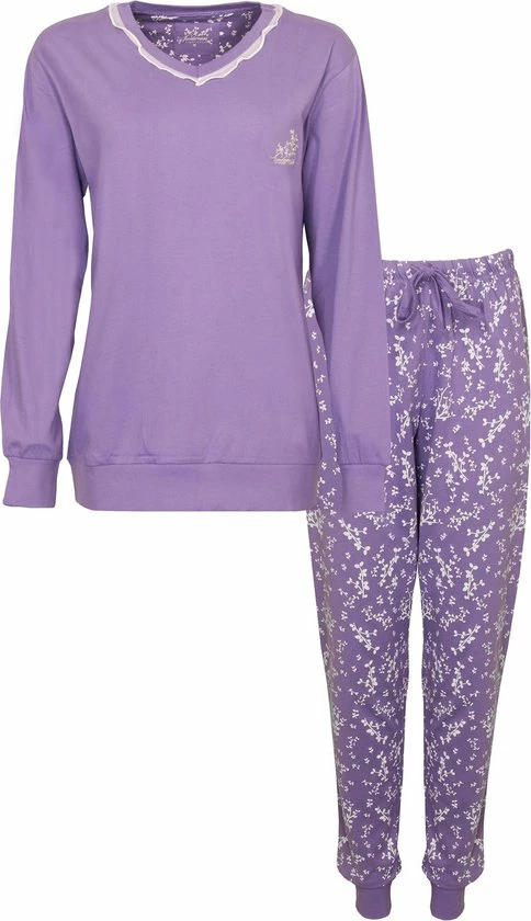 Tenderness dames pyjama gemaakt van 100% gekamde katoen. De pyjama is gemaakt in een draagbare en rekbare jersey kwaliteit. De unie top heeft Lang mouwen met boorden en een boord aan de zoom. De top heeft een V hals afgewerkt met een voile strook en om de top af te maken heeft de top de borst een geborduurd Tenderness logo met bloemetjes. De lange gebloemde dessin broek heeft in de taille een aantrekkoord en heeft boorden aan de enkels. Alle boorden met elasthan voor meer draagcomfort.